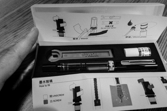 Die TWSBI Wrench—ein Stück Metall mit Einkerbung zur Öffnung deren Kolbenfüllfederhalter—ist bei deren Eco Modell sogar geformt wie ein Maulschlüssel.
