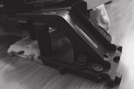 Eines muss ich hier voranstellen: Ich bin mit Spielzeug zu Franchises aufgewachsen. Was Spin Master hier macht, ist ein Tritt ins Gesicht von Kindern und Eltern. Es gibt keinen Maßstab, der die Reihe verbindet, nur allen möglichen Krimskrams in verschiedensten Größen und Ausführungen, lieblos produziert. Wieso statte ich ein Spielset mit einer Arrestzelle aus, wenn dies in der Ganzheit der Serie nicht einmal vorkommt? Wieso ist diese Zelle nicht groß genug, um das Spielset wieder in seinen Ursprungszustand zu versetzen, wenn eine der mitgelieferten Figuren darin steht? Wieso sind die Betten in der Kajüte nicht groß genug, um eine Figur hineinzulegen? Wieso kann ich die Brücke des Schiffes nicht schließen, wenn ich eine der mitgelieferten Figuren hineinstelle? Beim Radargerät war wohl geplant, den Bildschirm