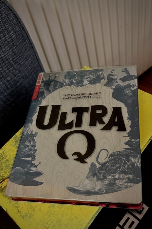 Kirby hat ein paar der Ultraman Vinyl Figuren zum spielen bekommen. Er schnappt sicher in letzter Zeit öfter die bluray Box und sagt „Uhma“. Er stellt die Figuren auf, ignoriert sie dann für eine Weile um sie dann in einer anderen Reihenfolge neu aufzustellen, ignoriert sie wieder, usw..