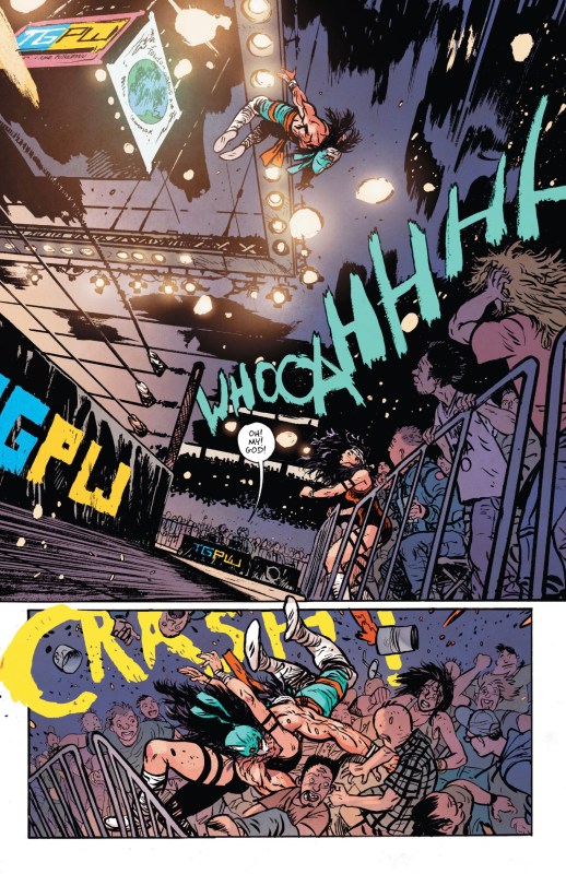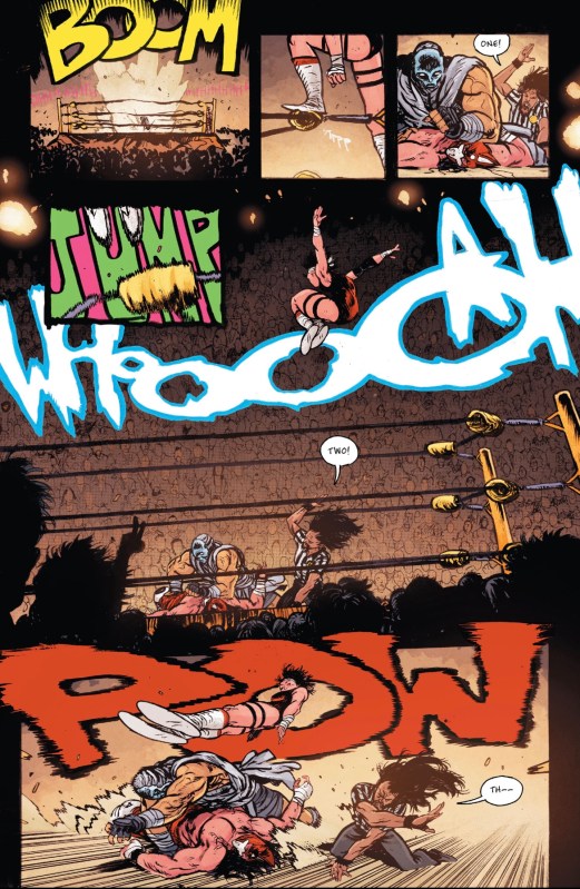 Ich kam endlich dazu, das erste Heft von Daniel Warren Johnson’s Do A Powerbomb zu lesen. Der Tritt einem wieder in die emotionalen Weichteile, und illustriert es in seinem hyperrealen Stil, der die interpretation des beim Wrestling gesehenen für Aussenstehende abbildet.