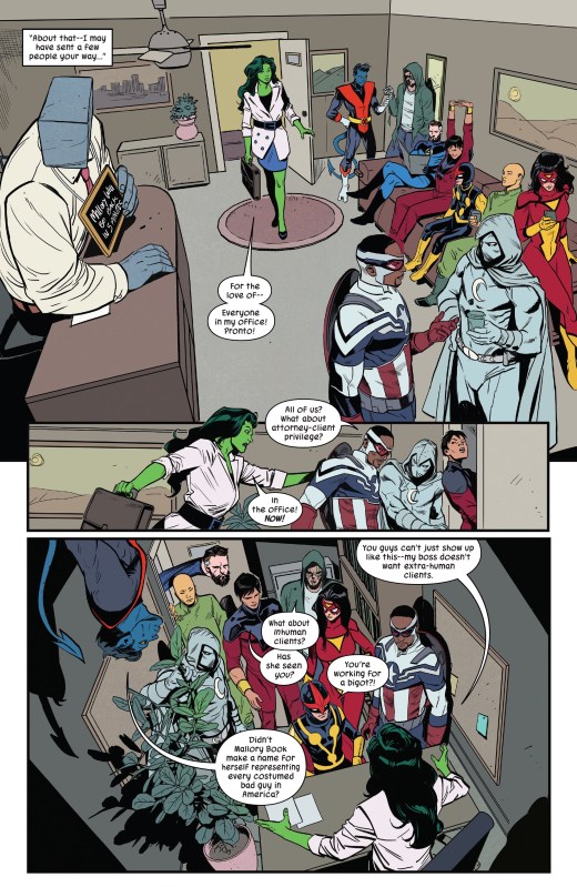 Die Gruppe an Klienten, die sich in She-Hulk no.4 (2022) fand ich interessant. Das fehlt seit langem, ein Comic in dem Jen Walters wieder primär Anwältin ist. Karnak’s Anwesenheit war ein »Aha?« Moment, dabei war er wegen der Punchline da; was die Figur präzise beschreibt.
