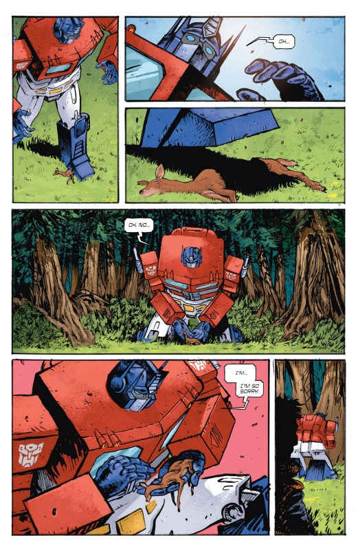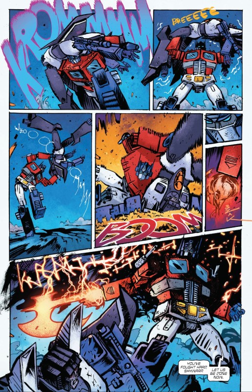 Daniel Warren Johnsons Transformers mini Neustart zieht sich zwar wie Kaugummi—so sind aktuelle US «Mainstream» Comics momentan—, ABER, Optimus Prime der Starscream mit einem German Suplex hinlegt ist einfach wunderbar anzuschauen, weil man meint, den Aufprall hören und spüren zu können.